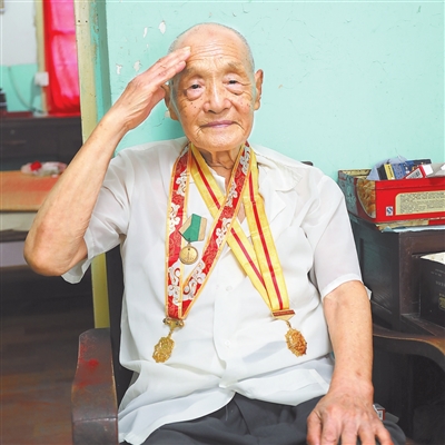 7月末,记者走进南昌县向塘镇的一所民居,见到了97岁的抗战老兵王成国。王老的儿子捧出珍藏的纪念章,小心地帮老人佩戴在胸前。老人坐在客厅的藤椅上,打开了记忆的闸门。 “恨啊,不恨鬼子能当兵吗?”说起当年参加八路军打鬼子的故事,王成国精神头十足。谈起与日军斗智斗勇的往事,讲到“过瘾”处,他几次开怀而笑。 1928年2月,王成国出生于山东省昌邑县(现昌邑市)。1941年,一位地下交通线的八路军战士暂居王成国家中。当时正读小学的他,心里很是佩服这位“八路”,经常和他聊天,听他讲打鬼子的故事。 一天,八路军战士对王成国说:“小家伙,跟我当‘八路’去,扛起枪,咱一起把鬼子赶出去。”就这样,14岁的王成国加入胶东军区十四团二营五连,肩负起护送抗日干部从胶东到鲁南的重任。 那时的战斗充满艰辛与危险。王成国和战友们常常打伏击战,他们埋伏在老乡家的房顶上,待日本鬼子的汽车驶近,便将手榴弹精准地扔到车上。然而,敌人的报复来得又快又狠,他们疯狂地烧毁百姓的房屋。于是,部队转移到野外,利用山头、沟壑等地形继续与敌人周旋。“那时候我们用手榴弹多,因为这个我们自己会造。”王老说。 1942年底,日军纠集万余名日伪军,对胶东抗日根据地进行大规模“拉网扫荡”。“所有抗日部队都不固定驻扎,每天晚上都要转移。”王老说,那时部队化整为零,在百姓掩护下与敌人周旋。一次突围中,王成国所在连队被包围,战士们集中火力冲锋,突出包围时,全连有30多名同志伤亡。 当记者问王成国在战场上是否害怕时,老人只是淡然一笑:“顾不得怕。” 1943年12月,王成国所在部队驻扎地遭鬼子突袭,他所在排负责掩护大部队转移。激烈的战斗中,身边战友接连倒下,排长背部中弹,王成国左腿负伤无法动弹。眼看鬼子越来越近,危急时刻,救援部队从鬼子背后发动攻击,鬼子闻声逃窜。“那时武器落后,情报不准,我命大,但很多战友牺牲了。”王老伤感地说。 受伤后,王成国被送到战地医院。当时医疗条件极差,为了躲避日军袭击,战地医院藏在地下。“其实就是挖通两口井,中间凿出通道,就成了战地医院。”王老回忆道。没有麻醉药,6名护士按住他,医生用一根探针连着绷带在贯穿伤洞里来回拉扯,血水四溅,剧痛难忍。可他硬是咬着牙挺了过来,清洗后上完药,手术便算完成。 让王成国铭记于心的是,尽管环境简陋,老百姓却把舍不得吃的东西都拿来给他和其他伤病员吃,希望他们能尽快康复,重返战场继续打鬼子。如今,王成国左大腿上一前一后两个大大的凹洞,便是那段峥嵘岁月留下的深刻印记。 在战火纷飞的岁月里,王成国也在不断成长。1944年5月,他光荣地加入了中国共产党。之后,他前往抗大学习班学习,系统学习了马克思主义基本理论、哲学、政治工作等,还学习了射击、刺杀、土工作业等军事课程。“经过组织的教育,明白了更多爱国救国的大道理。”王老的话语中满是对组织培养的感激。 抗日战争结束后,王成国又参加了解放战争。1958年,王成国转业到地方工作,之后又数次调动工作单位,但无论身处哪个部门、担任什么职务,王成国都将全部感情融入工作之中,为地方建设贡献自己的力量。 “过去的情况和现在不一样,如今国家强大了。但国家强大了也不能停滞不前,人家在进步,你若不进步,就会落后。”王老的话语朴实却充满力量,这是一位抗战老兵对国家发展的殷切期望,也是他用一生践行的初心与信仰。