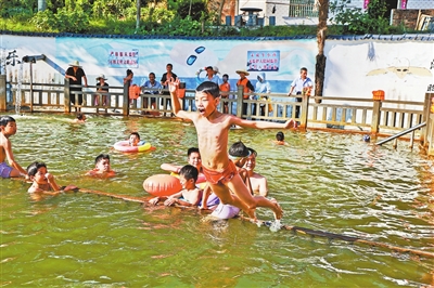 炎炎夏日,萍乡市湘东区荷尧镇大义村的露天泳池里,每天都有许多村民享受清凉。此前,大义村通过“屋场贴心会”收集群众急难愁盼问题,将村里一个臭水塘改造成占地面积约300平方米的泳池。暑假期间,荷尧镇人大代表、党员志愿者每天在游泳池值守,保障游泳安全,让孩子们欢度假期。 本报全媒体记者 陈 璋摄