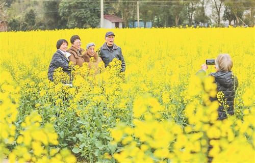 游客在荷源乡踏青赏油菜花