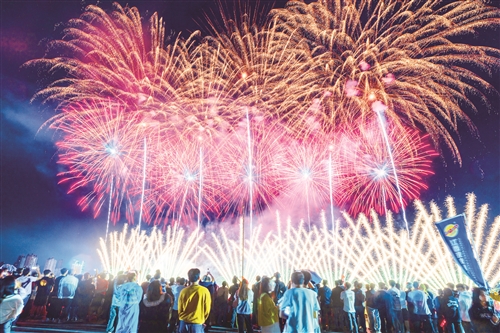 上栗烟花秀,吸引省内外游客驻足观看 梁 欣摄