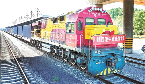 萍乡赣西国际港开通赣西地区首趟中欧班列 李桂东摄