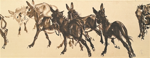 黄胄,以画驴闻名,是20世纪中国美术星空中的耀眼星辰。正在省美术馆举行的“百年黄胄:其乐陶陶”展,展出黄胄不同时期的代表作100件,涵盖人物、花鸟、山水等多种题材,全景式呈现他的艺术生涯、创作脉络和艺术风范,凝聚着他对生活的热爱与思考。观众可近距离欣赏其笔墨技法,感受作品中蕴含的时代故事与人文情怀。此展由中国美术家协会、江西省美术馆、炎黄艺术馆等单位主办,展期至3月19日。 黄胄(1925—1997),河北蠡县人,著名画家。本姓梁,少年时代自取名“黄胄”,意为“炎黄之胄”。1949年参军,长期深入边疆基层,创作了许多反映各族人民生产生活的美术作品,被毛主席称赞为“新中国培养的有为青年画家”。他聚集全国艺术家资源,推动成立中国画研究院(今中国国家画院),后又汇集多方力量建成炎黄艺术馆。 黄胄诞辰100年的2025年,主办方举办了“百年黄胃”系列纪念展,首站广东展的主题是“把生活的感动讲出来”,诠释了黄胄朴素的艺术信条;第二站北京展的主题“笔不离手”,是黄胄一生勤勉于画的真实写照;第三站安徽展以“诗随雨露飘过来”为题,意在凸显黄胄激情浪漫艺术的特质。本次在江西的展览以“其乐陶陶”为主题,则是对黄胄艺术与人生境界的另一重解读。展览虽然跨入新年,也是系列纪念展的第四站。 黄胄与江西的缘分,显性一面,是他1964年前往井冈山采风写生,并以此为基础绘制代表作《井冈山第一面红旗》;隐性一面,则是他对江西先贤八大山人艺术的推崇。黄胄与八大山人皆好饮酒。八大山人曾手书刘伶《酒德颂》。本次展览的主题正是来自其中“无思无虑,其乐陶陶”一句。“其乐陶陶”,既指酒后陶然的快意,又指艺术家醉心笔墨时自由忘我的境界。 围绕主题,展览用五个单元勾勒出黄胄广阔的艺术天地。 “日起东山风光好”,以日出意象串联其红色题材与行旅作品。他两度绘就《井冈山第一面红旗》,成为其红色题材的重要代表作。作品既呼应井冈山的革命曙光,也象征着黄胄艺术生涯的昂扬启程,呈现其如何将个人创作与时代轨迹相叠合,在时代长卷中走出自己的艺术道路。 “渔民生来真强干”,聚焦普通劳动者的身影。朴实能干的打鱼人,是无数劳动者的生动缩影。黄胄以真诚的画笔,捕捉他们理网、摇橹、赶鹅、牧牛的身姿,表现出作者对普通劳动者的深情礼赞。 “风调雨顺万民欢”,记录寻常生活的欢愉。作品所描绘的,有少数民族人家骑驴逛巴扎,也有妇女挑担去赶墟;有女人买花布的欢颜,也有男人剃胡子的爽利;有宴会上的盛情款待,也有演出中的纵情舞蹈……这些寻常而动人的瞬间,被作者用画笔生动定格。 “万物一片好春光”,则定格了花鸟走兽的生动情趣。他笔下的毛驴憨拙可亲,马匹俊逸奔放,骆驼从容稳重,鸡鸭成群嬉戏,鸟雀灵动翩然,无不寄托着作者对生命韵律的深沉观照。展厅中有两件专门画驴的长卷格外引人注目。黄胄笔下的驴造型准确生动,手法简练概括,去掉了许多烦琐的细节,弱化了明暗和体积感,突出了驴的生动性,笔墨的流畅,笔法的奔放,颇耐人寻味。 “醉倒刘伶卧高床”,通过摹古与饮酒题材,呈现作者在涵养传统、化古为我方面的修养。他曾潜心研习八大山人等先贤作品,在精神境界上与之遥相呼应。本单元选取黄胄饮酒题材及摹古作品,展现其如何将古人之法化为己用,在酒意淋漓、笔意纵横之间,抵达“其乐陶陶”的艺术境界。这既是他对江西先贤的致敬,也是以古为友、学而为用艺术理念的生动体现。(图片为展览中的黄胄作品) □ 本报全媒体记者 钟兴旺 文/图