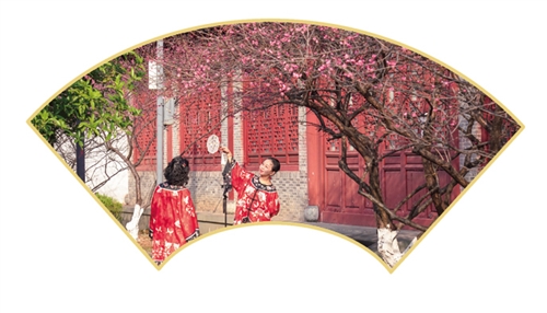2月5日,在抚州市梦园景区,梅花相继绽放,好似一幅早春画卷,引来游客驻足赏花,拍照打卡。通讯员 郭昊摄