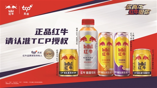 正品红牛认准罐体上的天丝集团(TCP)官方授权标识 |
