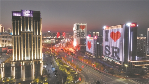 上饶高铁经济试验区坚持高起点规划、高标准建设,持续优化空间布局,城市功能品质不断提升,从国内高铁枢纽蝶变为现代化的科创新城。图为该试验区夜景。 朱文标摄