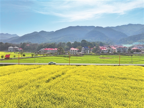 近日,芦溪县芦溪镇山下村,金黄的油菜花竞相绽放,与村庄、公路、青山绿树相互映衬,勾勒出一幅春日田园画卷。近年来,芦溪镇坚持党建引领,以花海美景带动乡村旅游,助力农户增收致富,走出乡村振兴新路径。王强摄