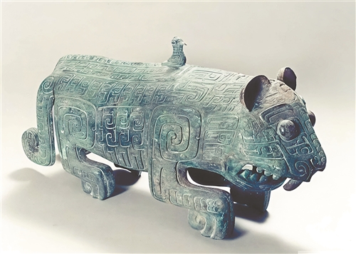 伏鸟双尾青铜虎