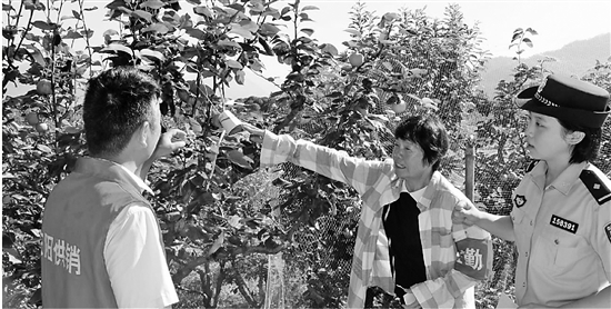 青李是虎鹿镇主要果业之一,有的果农会将其腌渍,卖给罐头厂增加收入。从往年情况来看,腌制涉及场地、品质等,农户与收购商之间极易产生纠纷。为此,虎鹿派出所将助农举措落实到果熟前,主动参与“青李收购座谈会”,引导双方协商达成一致。同时,派出所联合供销、市场监管等部门成立“护果服务志愿队”,勤访果园,指导农户做好安全防范措施、化解纠纷矛盾。