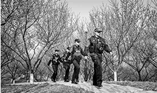 早春时节,梅花盛开,警景交融。湖州南浔区双林派出所民辅警在辖区莲花兜村梅花林巡逻,他们一边宣传安全防范知识,一边耐心解答群众咨询。 通讯员 宋元锋