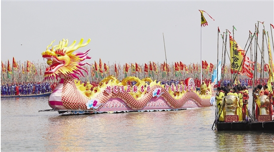 4月6日,2025泰州姜堰溱潼会船在江苏省泰州市姜堰区溱湖国家湿地公园开幕,五百多条各式船只和上万名会船选手飞篙走桨、弄潮击浪,演绎历久弥新的民俗画卷。 “天下会船数溱潼,溱潼会船甲天下”,溱潼会船又名清明会,由南宋相沿至今历经数百年传承而不衰,已于2008年被列入国家级非物质文化遗产名录。 新华社 兰红光 摄