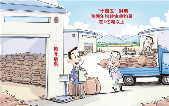 国家发展改革委党组成员、国家粮食和物资储备局局长刘焕鑫近日在国新办举行的“高质量完成‘十四五’规划”系列主题新闻发布会上介绍,“十四五”时期,我国年均粮食收购量在4亿吨以上。粮食库存充裕、市场平稳。 新华社 王鹏