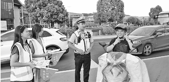 近日,新昌县公安局交警大队携手学生志愿者群体,开展“文明出行 幸福相伴”交通安全宣传劝导活动,倡导文明出行新风尚。