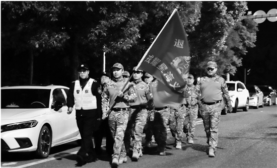 近日,温州龙湾公安星海派出所正式组建“戎耀星海”退伍军人义警队并举行授旗仪式。随后,义警队开展了徒步巡逻,有效提升群众安全感,警民共同守护平安家园。
