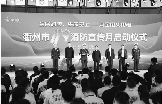 近日,衢州市举行119消防宣传月启动仪式,以“全民消防、生命至上——安全用火用电”为主题,旨在进一步增强市民的消防安全意识,提升市民在火灾等突发事件中的应急处置能力。