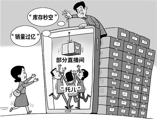 真相究竟如何?“许多直播间里‘库存秒空’的情节都是精心设计的‘演出’。”江西一家主营直播业务的传媒公司负责人罗先生说,这是一种“饥饿营销”的手段。广东佛山的吴女士说,曾在一个直播间蹲了十几分钟,发现评论区来来回回就是几个人,但一说上链接,库存很快被抢空。“抢到时我还以为自己很幸运,事后冷静下来才回过神,原来只有我是真消费,其他人都是‘托儿’啊!”