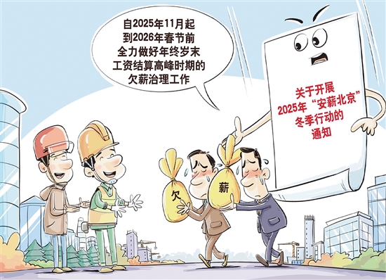 治理欠薪 北京市日前发布《关于开展2025年“安薪北京”冬季行动的通知》,自2025年11月起到2026年春节前,聚焦工程建设领域、新就业形态行业企业,排查欠薪风险隐患、统一执法活动、查处欠薪案件,确保各类欠薪风险隐患随出随清、动态清零,全力做好年终岁末工资结算高峰时期的欠薪治理工作。 新华社 王鹏 作