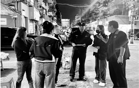 近日,台州椒江公安白云派出所组织警力进村入户、走街串巷,开展安全隐患排查,并向群众宣讲如何防范电信网络诈骗、发放反诈宣传资料,进一步增强群众反诈防骗意识,帮助他们守牢“钱袋子”。 通讯员 何文斌 摄