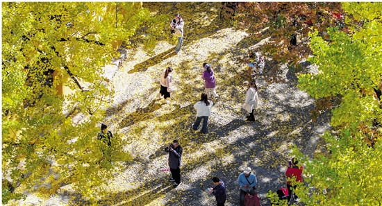 11月19日,长兴县小浦镇八都岕十里古银杏长廊景区,银杏山林与古宅民宿相映成趣,绘就美丽乡村的五彩画卷。小浦镇有3万余株原生态银杏树,百年以上古银杏有3700多株,引得各地游客纷至沓来,有效推动全域旅游、乡村振兴。 通讯员 谭云俸 许扬 摄