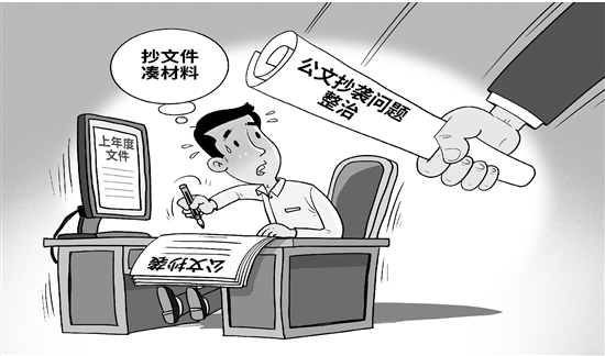震慑“文抄公” 继内蒙古、广西、安徽等省份有关部门开展公文抄袭问题整治工作后,贵州省近日通报整治形式主义为基层减负典型问题。向抄文件、凑材料的不良风气“亮剑”,表明了对文件抄袭行为严肃处理的决心,同时也推动形成对“文抄公”的震慑。 新华社 朱慧卿 作