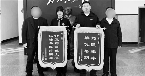 一起道交纠纷成功调解后,当事人给法官和调解员送来锦旗。