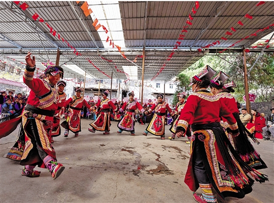 11月18日,在茂县赤不苏镇,当地群众在跳萨朗舞。 11月18日,四川省阿坝藏族羌族自治州茂县赤不苏镇举行特色民俗文化活动,当地群众身着传统民族服饰,与游客一起载歌载舞、品尝咂酒、共话丰收,喜迎一年一度的羌历新年。 羌历新年是羌族最为隆重的节日。2024年12月5日,联合国教科文组织将羌年从急需保护的非物质文化遗产名录转入人类非物质文化遗产代表作名录。 新华社 江宏景 摄