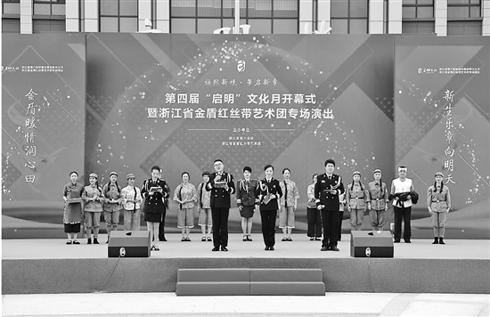 本报讯 歌声悠扬,舞姿翩跹。近日,以“金盾暖情润心田、新生乐章向明天”为主题的第四届“启明”文化月开幕式暨浙江省金盾红丝带艺术团专场演出在浙江省第六监狱举行。