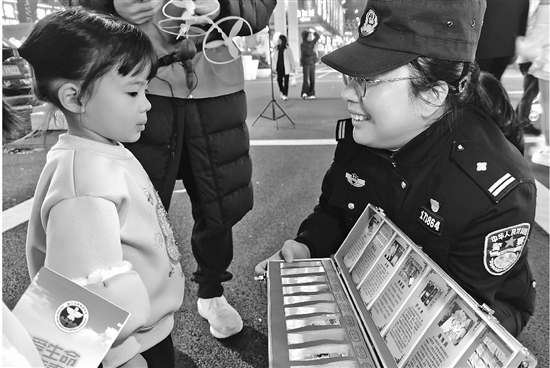 近日,台州椒江公安府前派出所组织民警、辅警、义警来到人流量大的耀达路步行街,开展安全防范宣传活动,向过往群众讲解反诈、禁毒、防盗、防火等知识,并发放相关资料、赠送小礼品。
