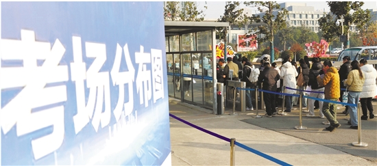 11月30日,在江苏省连云港中等专业学校考点,考生有序入场。
