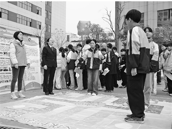 近日,浦江县检察院联合相关单位走进辖区学校普及宪法知识,通过抽盲盒、竞猜、迷宫闯关等互动环节,寓教于乐地让学生们学到宪法知识。 通讯员 章赟 摄