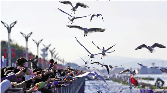 近日,大批红嘴鸥陆续抵达昆明,为春城增添了灵动生机,也吸引市民游客前来赴这场冬日之约。
