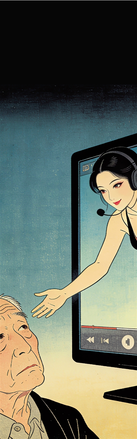 为主播打PK“镇场子”,老人两个月刷18万元礼物;主播手把手教充值,老人一年打赏50万元养老钱;主播以“红颜知己”“忘年交”为幌子,3个月骗光老人20万元癌症治疗费用……在一声声“大哥”“姐姐”“爸爸”“妈妈”的亲切呼唤或卖惨故事中,一些老人纷纷掏出养老钱、救命钱打赏主播。