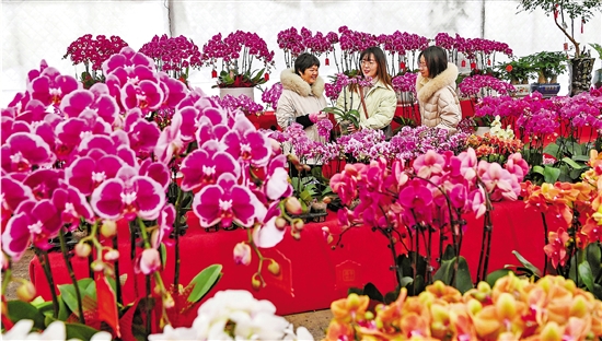 12月22日,金华市金东区澧浦花木城花卉市场内,三角梅、蝴蝶兰、仙客来、杜鹃等盆栽花卉竞相绽放。经营户们正忙于修剪、养护和布置铺面,积极备货迎接即将到来的销售旺季。随着元旦临近,各地顾客纷纷前来选购花卉,迎接新年到来。 时宽兵 摄