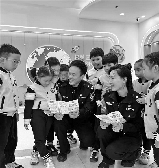 近日,温州龙湾公安瑶溪派出所党员民警汪从从、魏洁茹走进辖区幼儿园,给孩子们讲解安全防范知识,并鼓励孩子们成为“小小法治宣传员”,将法治的种子播进童心。