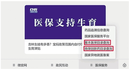 国家医保局微信公众号已上线新版基本医保目录查询功能。(图片来自国家医保局)