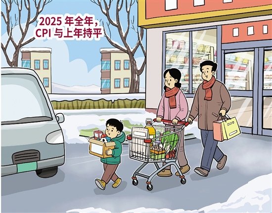 国家统计局近日发布数据显示,2025年12月份,全国居民消费价格指数(CPI)环比上涨0.2%,同比上涨0.8%;2025年全年,CPI与上年持平。