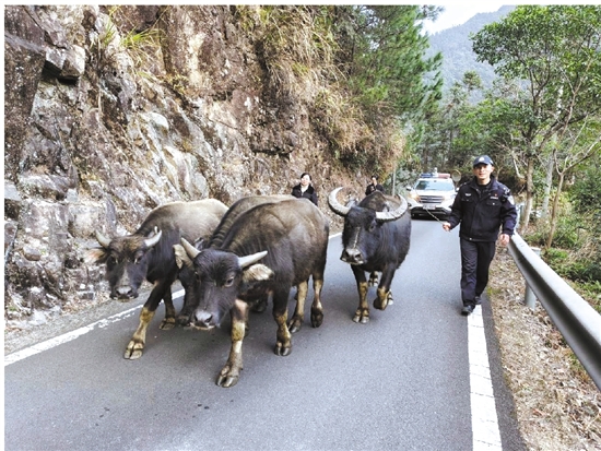 “警察同志快来看看,好多牛闯进我们菜地。”9日傍晚,云和县公安局梅源派出所接到上张化村村民求助,民警火速赶往现场。