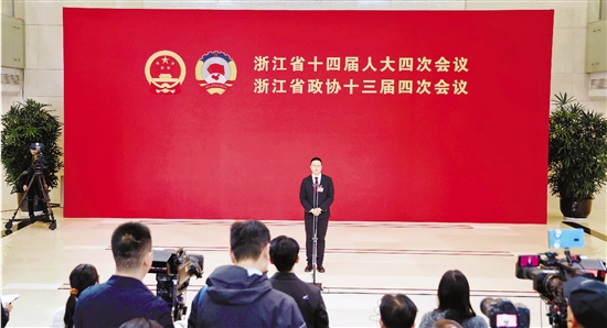 1月15日下午,浙江省十四届人大四次会议第二次全体会议前进行“代表通道”集中采访活动。7名省人大代表,就人大工作和代表履职问题答记者问。