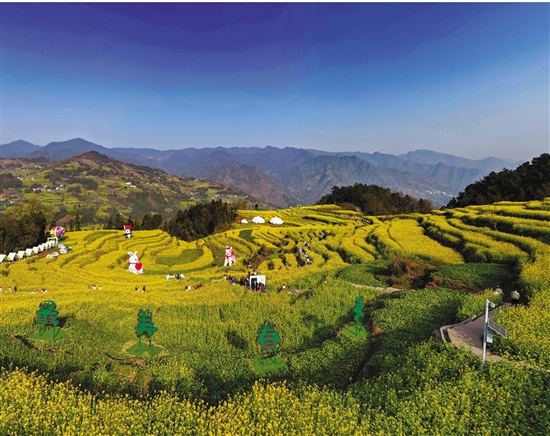油菜花开游客来 1月17日,在四川省宜宾市屏山县中都镇民建村,游客在油菜花田中游玩(无人机拍摄)。 1月17日,四川省宜宾市屏山县中都镇以川南最早盛开的油菜花为媒介,举办迎新春乡村油菜花旅游活动,大力发展乡村早春经济助力乡村振兴,助力农户增收致富。 新华社 彭珉翔 摄