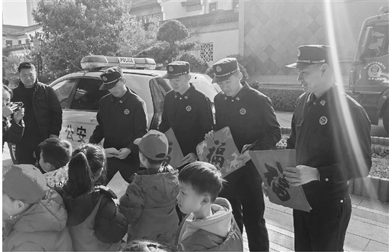 近日,嵊州三江派出所联合嵊州老年大学书画协会、民生银行、嵊州市消防救援大队等单位,开展“丹青送福·安全护航”主题活动,将祝福与安全送到居民家门口。 通讯员 钟悦