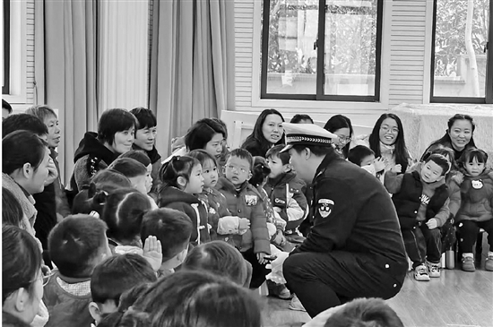 为增强学龄前儿童的交通安全意识,近日,新昌县公安局交管大队走进新昌幼儿园悦庄园区,为小朋友和家长们上了一堂生动有趣的交通安全教育课。 通讯员 石嘉浩