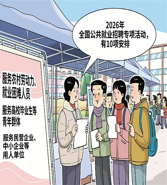 人力资源社会保障部近日印发通知,部署开展2026年全国公共就业招聘专项活动,明确全年10项活动安排,将围绕重点群体就业需求和经营主体用工需求提供服务。