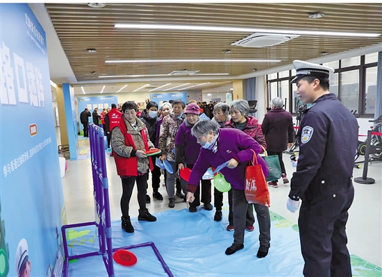 近日,交通安全游园会走进新昌县南岩颐乐学院。新昌交警通过趣味闯关游戏,让老年人在欢乐的氛围中学习安全文明出行知识。 通讯员 吴钢