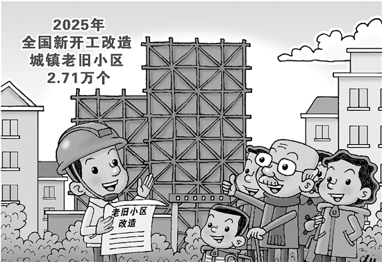 记者近日从住房城乡建设部了解到,2025年,全国新开工改造城镇老旧小区2.71万个、499万户,共完成投资1332亿元。 住房城乡建设部相关负责人表示,2026年,要以“绣花”功夫精细化推进城镇老旧小区改造、完整社区建设、“口袋公园”建设、绿地开放共享、“温暖工程”建设、城市小微公共空间改造,提升无障碍适老化环境品质。 新华社 徐骏