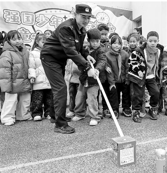 近日,结合“百日攻坚”专项行动,岱山县公安局秀山派出所民辅警走进辖区秀山小学,为小学生示范如何安全燃放鞭炮,上了一堂生动的节前安全教育课。 通讯员 张志龙