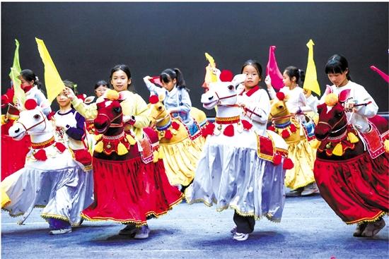 2月4日,在广东省潮州市饶平县青少年宫,少儿布马舞队队员在排练。