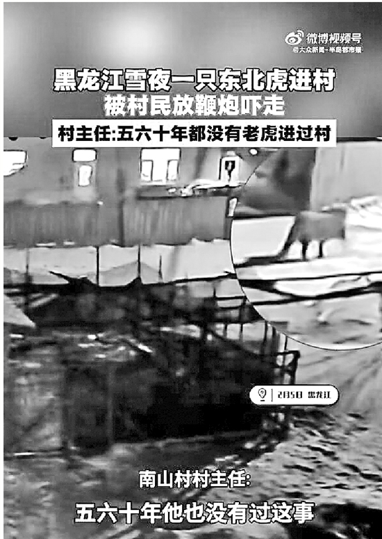 近日,在黑龙江省穆棱市共和乡碱场村,当地居民通过监控摄像发现东北虎进村。从监控看到,东北虎在街道上反复踱步,溜达了一圈离开,没有人员伤亡。目前,当地已经加强巡护和监控,并紧急下发通知,要求各村立即通知村民,提高警惕、注意出行安全,尽量避免单独进山入野,看管好家中畜禽;发现野生动物踪迹及时向村委会报备,切勿擅自驱赶,谨防人身伤害。