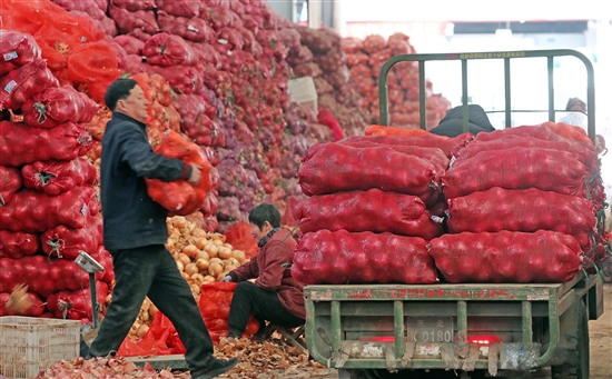 2月10日,杭州蔬菜批发交易市场内经营户们正有序进行蔬菜的卸载、分装与转运,确保一批批新鲜食材高效流向终端市场。为应对近期天气变化、保障节前供应稳定,市场方面提前组织经营户调配货源,加强产销衔接,全力保障主要农产品供应量足、价稳、品类丰富,严把食品安全关,确保市民春节期间吃上丰盛、平价、放心的蔬菜。 林云龙 摄