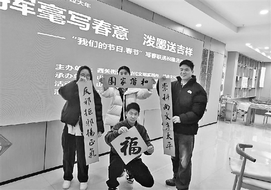 连日来,金华扎实推进反邪“八进”宣传,将反邪教育融入春节民俗。图为金华开发区西关街道在文明实践所开展“反邪迎新春”送春联活动。