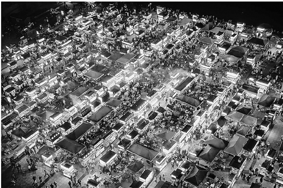 新城天元东街夜宵摊群曾是困扰周边居民多年的“老大难”——油烟扰民、噪音不断、交通拥堵,投诉量常年居高不下。面对这一“雷点”,天台没有简单“一赶了之”,而是坚持堵疏结合:一方面联合执法清理原摊点区域严防回潮;另一方面反复踏勘选址,在新城广场内规划建设规范化疏导点,拓宽通道、增设出入口并完善消防设施。曾经烟熏火燎的“投诉热点”已变成规范有序的“夜市亮点”。