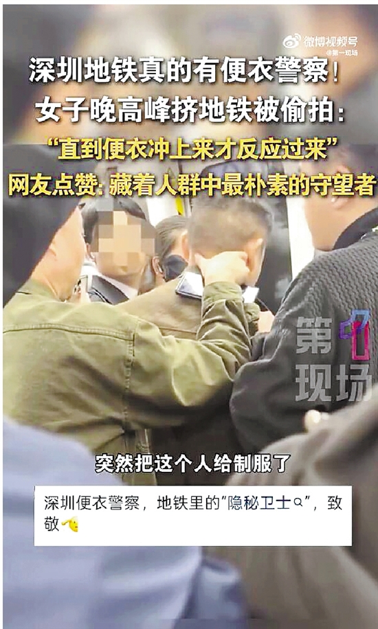 近日,广东深圳一名女子发视频称,晚高峰乘坐地铁时遭遇偷拍。在她毫无察觉的情况下,地铁便衣警察早已锁定嫌疑人,一路跟随取证后果断将其制服。该女士随后配合警方完成笔录,嫌疑人被依法拘留。她发视频讲述这段经历,感谢便衣警察在每日近千万客流的地铁网络中,默默守护市民安全。